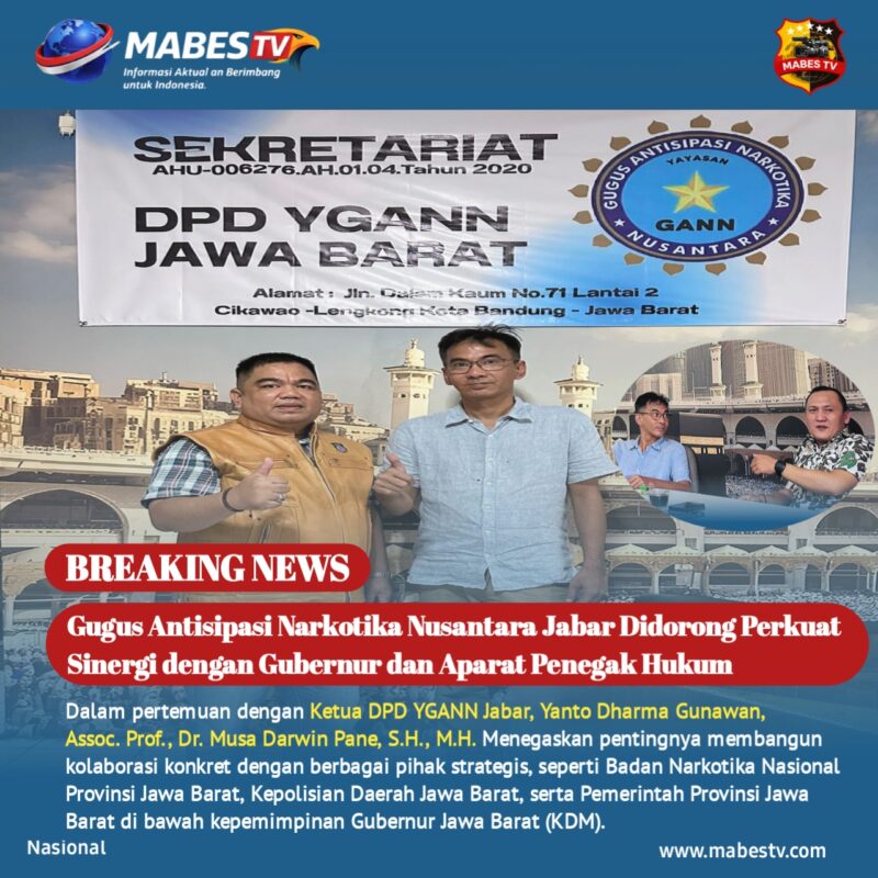 Bandung // mabestv.com – Upaya pemberantasan dan pencegahan penyalahgunaan narkotika di Jawa Barat terus didorong untuk lebih terstruktur dan terkoordinasi. Dewan Pimpinan Daerah Yayasan Gugus Antisipasi Narkotika Nusantara (DPD YGANN) Provinsi Jawa Barat kini didesak memperkuat sinergi lintas sektor, termasuk dengan pemerintah daerah dan aparat penegak hukum. (13 April 2026)