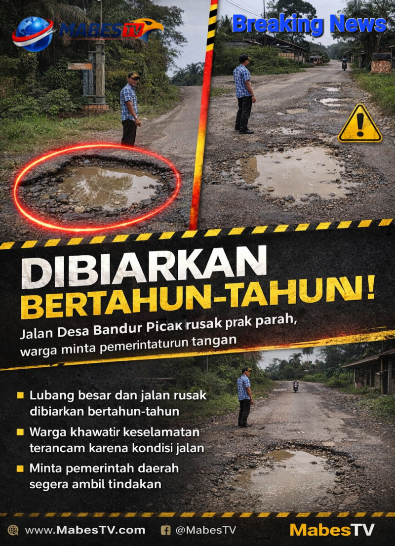 Kampar // mabestv.com — Kondisi sejumlah ruas jalan rusak di Desa Bandur Picak, Kecamatan Koto Kampar Hulu, Kabupaten Kampar, kembali menuai sorotan. Kerusakan yang telah berlangsung bertahun-tahun itu dinilai semakin parah dan berdampak langsung terhadap aktivitas masyarakat yang melintas setiap harinya.