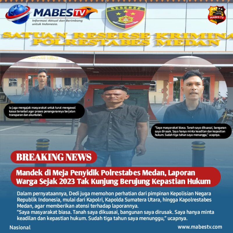 Medan // mabestv.com — Penanganan sebuah perkara yang dilaporkan sejak pertengahan 2023 di wilayah hukum Polrestabes Medan kembali menuai sorotan tajam. Hingga kini, kasus tersebut belum menunjukkan perkembangan berarti, meski proses penyelidikan dan pemeriksaan saksi telah dilakukan. (16/04/2026)