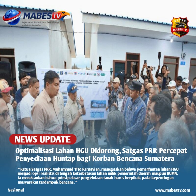 Jakarta // mabestv.com — Pemerintah melalui Satuan Tugas Percepatan Rehabilitasi dan Rekonstruksi (Satgas PRR) Pascabencana Sumatera terus mempercepat penyediaan hunian tetap (huntap) bagi para penyintas bencana di Aceh, Sumatera Utara, dan Sumatera Barat. Salah satu langkah strategis yang kini menjadi sorotan adalah optimalisasi lahan Hak Guna Usaha (HGU) sebagai solusi percepatan relokasi yang aman dan berkelanjutan. (09/04/2026)