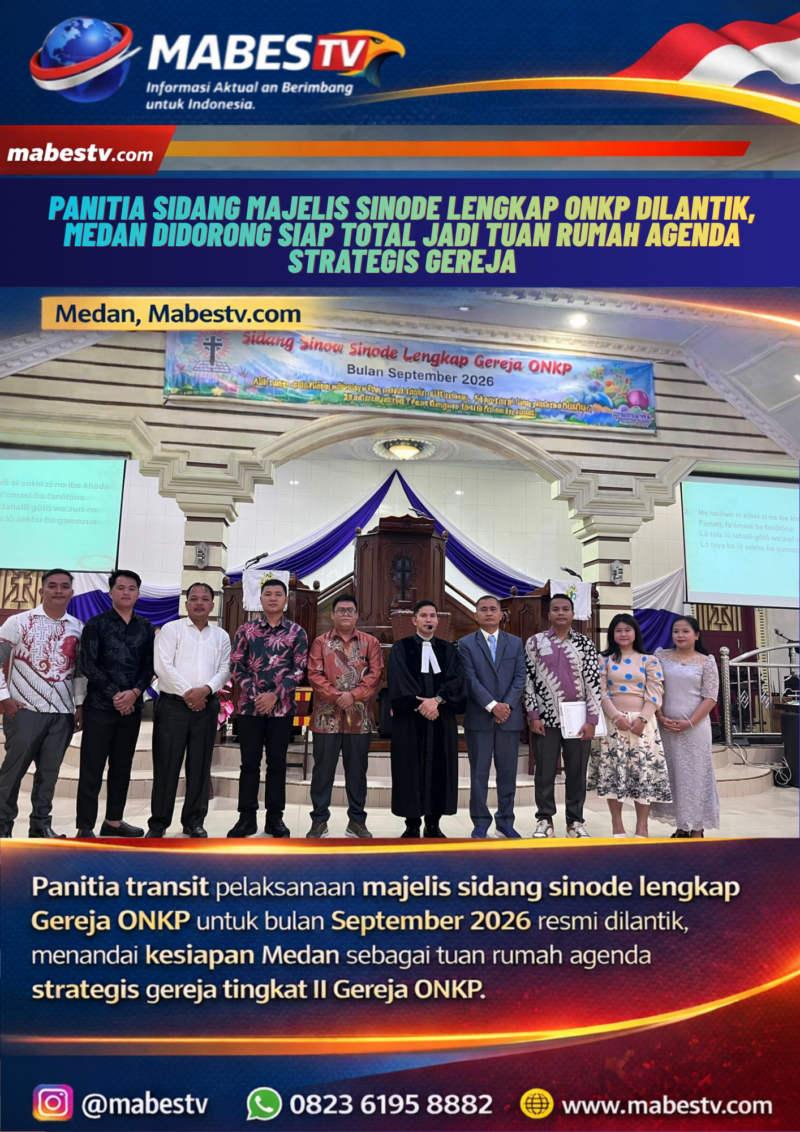 Medan // mabestv.com — Suasana khidmat dan penuh makna menyelimuti Ibadah Minggu di Gereja ONKP Perumnas Mandala Jemaat, Minggu (05/04/2026). Ibadah yang dipimpin langsung oleh Pdt. Anemala Zisokhi Zai, S.Th., M.Th., tersebut tidak hanya menjadi ruang perenungan rohani, tetapi juga menandai dimulainya langkah strategis gerejawi melalui pelantikan Panitia Transit Sidang Majelis Sinode Lengkap ONKP, Senin (06/04/2026).