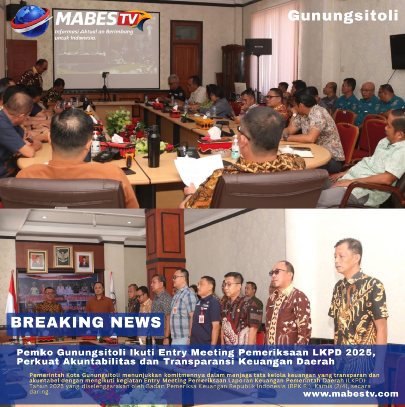 Gunungsitoli // mabestv.com — Pemerintah Kota Gunungsitoli menunjukkan komitmennya dalam menjaga tata kelola keuangan yang transparan dan akuntabel dengan mengikuti kegiatan Entry Meeting Pemeriksaan Laporan Keuangan Pemerintah Daerah (LKPD) Tahun 2025 yang diselenggarakan oleh Badan Pemeriksa Keuangan Republik Indonesia (BPK RI), Kamis (2/4), secara daring.