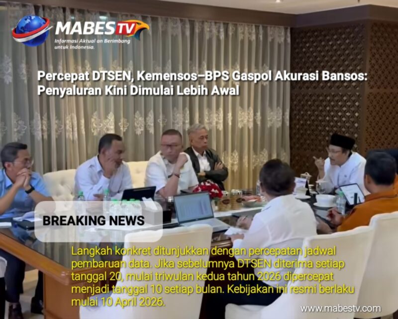 Jakarta // mabestv.com — Pemerintah melalui Kementerian Sosial (Kemensos) bersama Badan Pusat Statistik (BPS) tancap gas mempercepat pembaruan Data Tunggal Sosial dan Ekonomi Nasional (DTSEN) demi memastikan penyaluran bantuan sosial (bansos) semakin tepat waktu dan tepat sasaran.