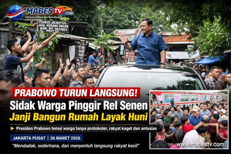 Jakarta Pusat // mabestv.com – Presiden Republik Indonesia, Prabowo Subianto, melakukan kunjungan mendadak ke kawasan permukiman warga di pinggir rel kereta api wilayah Senen, Kamis (26/03/2026) sore.