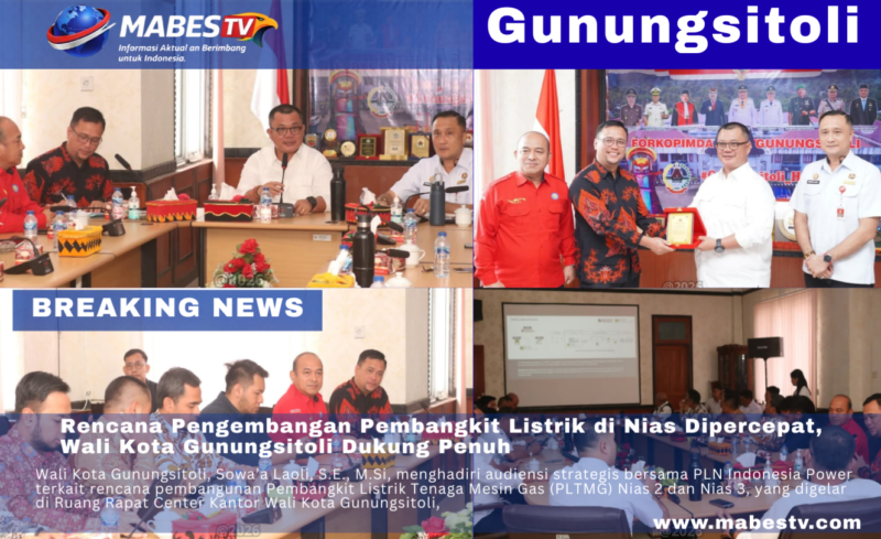 Gunungsitoli // mabestv.com — Upaya memperkuat sistem kelistrikan di Kepulauan Nias kian serius. Wali Kota Gunungsitoli, Sowa’a Laoli, S.E., M.Si, menghadiri audiensi strategis bersama PLN Indonesia Power terkait rencana pembangunan Pembangkit Listrik Tenaga Mesin Gas (PLTMG) Nias 2 dan Nias 3, yang digelar di Ruang Rapat Center Kantor Wali Kota Gunungsitoli, Rabu (01/04).