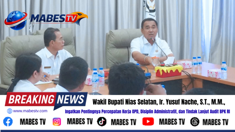Nias Selatan // mabestv.com — Wakil Bupati Nias Selatan, Ir. Yusuf Nache, S.T., M.M., memimpin Rapat Koordinasi (Rakor) rutin bersama seluruh Kepala Organisasi Perangkat Daerah (OPD) di lingkungan Pemerintah Kabupaten Nias Selatan. Kegiatan tersebut berlangsung di Ruang Meeting Bupati Nias Selatan, Jalan Arah Lagundri Km. 5, Rabu (25/3/2026).