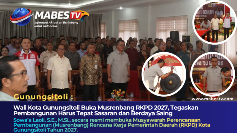 Gunungsitoli // mabestv.com — Wali Kota Gunungsitoli, Sowa’a Laoli, S.E., M.Si., secara resmi membuka Musyawarah Perencanaan Pembangunan (Musrenbang) Rencana Kerja Pemerintah Daerah (RKPD) Kota Gunungsitoli Tahun 2027. Pembukaan ditandai dengan pemukulan gong di Ruang Rapat II Kantor Wali Kota Gunungsitoli, Jumat (27/3), sebagai simbol dimulainya forum strategis penentuan arah pembangunan daerah.