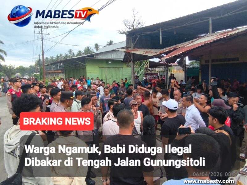 Gunungsitoli, Sumatera Utara // mabestv.com – Kemarahan warga memuncak setelah terungkap dugaan praktik peredaran babi ilegal di Kota Gunungsitoli. Aksi spontan pun terjadi, dengan pembakaran hewan ternak di tengah jalan raya dan area penampungan, Senin (6/4/2026) sekitar pukul 08.00 WIB.